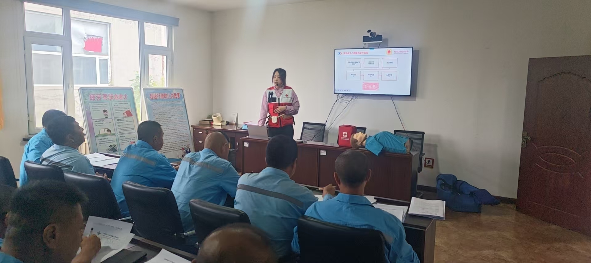 为普及应急救护知识,提升油品运输从业人员突发情况处置能力,8月20日,市红十字会联合昆仑物流吉林分公司通化配送中心,为近三十名员工开展心肺复苏(CPR+AED)应急救护培训。