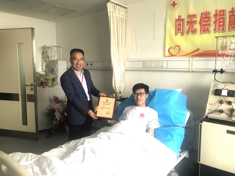 在经过四个小时的采集,顺利的采集了200ml的造血干细胞悬混液。由工作人员护送到北京,及时回输到8岁患儿的身体。