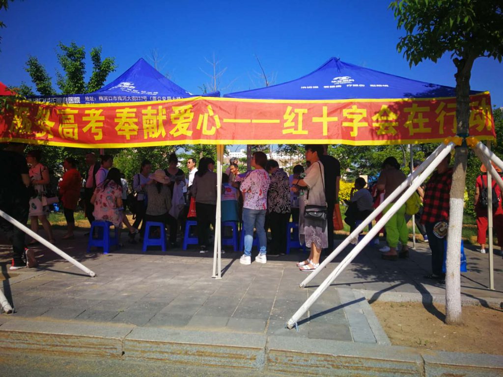 6月7日梅河口市红十字会联合华正眼科医院,积极开展服务高考志愿服务活动。在实验中学和实验高中两个考点分别设立了红十字爱心服务站。发放恒大冰泉矿泉水;为多名考生家长做了血压测量;为多名家长提供了眼部疾病咨询;发放红十字基础知识宣传册。深受广大考生和家长的欢迎,彰显了“人道、博爱、奉献”的红十字精神。