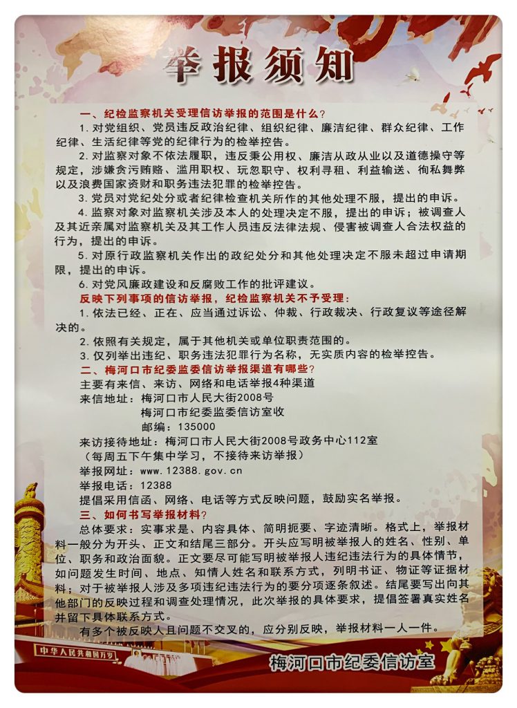 市红十字会关于进一步加强纪检监察信访举报须知的宣传海报