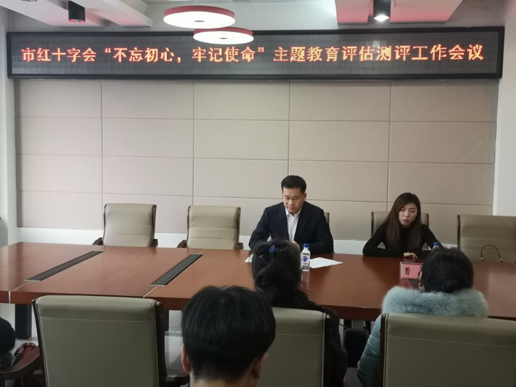 12月27日下午,市红十字会在卫生局五楼会议室召开“不忘初心,牢记使命”主题教育评估工作测评会。会议由红十字会副会长曾祥峰同志主持,参会人员达32以上,市主题教育第四巡回组曹凡同志莅临会议进行工作指导。