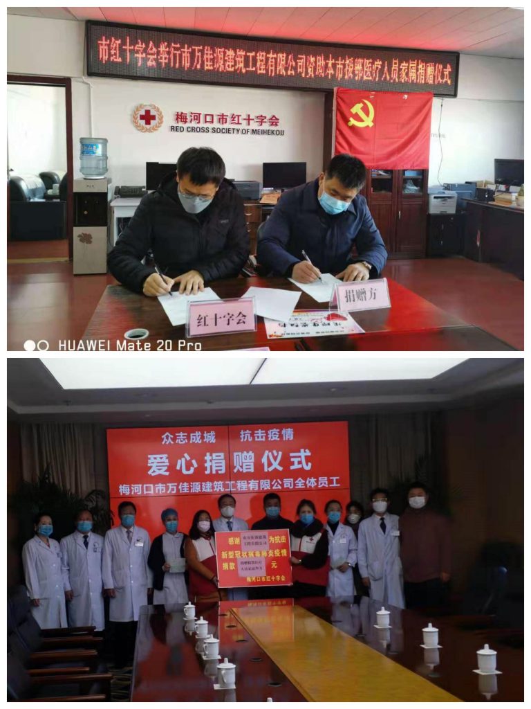 2月11日上午,梅河口市万佳源建筑工程有限公司全体职工为援鄂医疗家属捐赠3万元,为抗击疫情的医疗人员送去一份人文关怀。