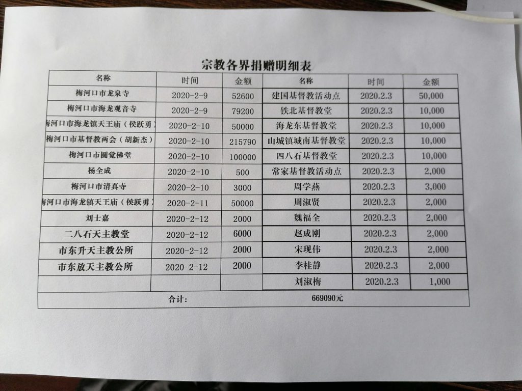 在市委统战部的倡议下,市宗教各界前后开展第三次捐赠活动,2月3日捐赠10.6万元,2月9日捐赠13.18万元,2月12日累计捐赠