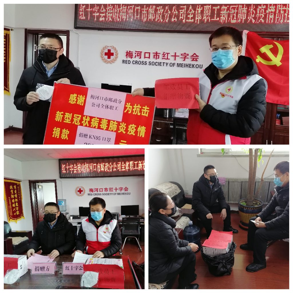 2月13日中午,梅河口市邮政分公司全体职工为抗击疫情捐赠KN95口罩300只,价值7800元,定向捐赠给抗击疫情的医护人员,为打赢疫情阻击站贡献一份力量。