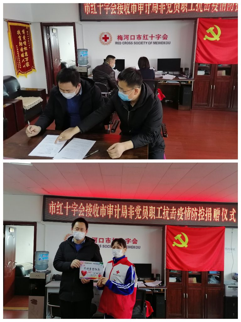 3月4日下午,梅河口市审计局非党员职工为疫情防控捐赠1100元,献出一份爱,团结一份力量。