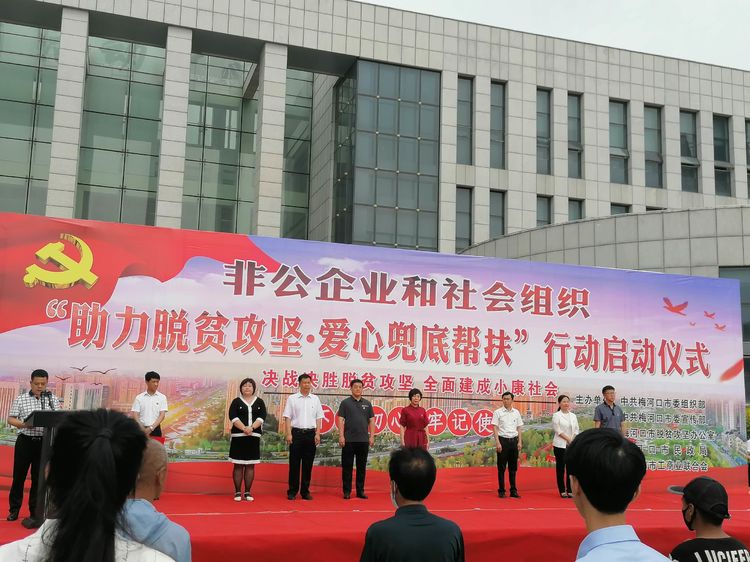 6月23日,梅河口市红十字会参加市委组织部、市委宣传部、脱贫攻坚办公室、市民政局、市工商联联合在市文体中心举行的“助力脱贫攻坚,爱心兜底帮扶”活动的启动仪式。