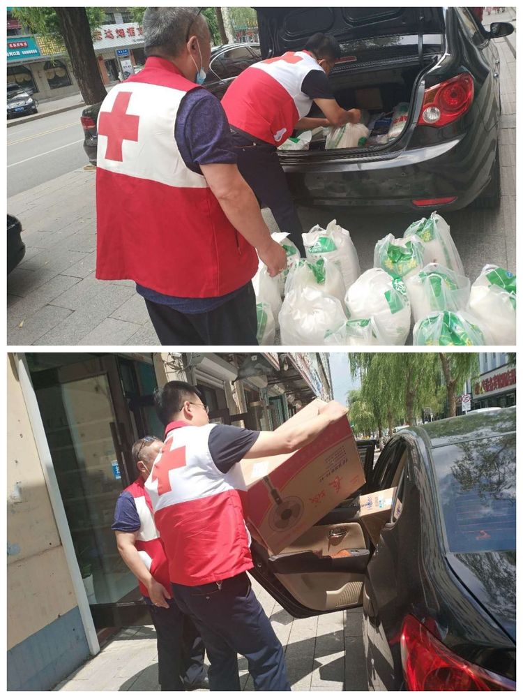 6月28日,红会副会长曾祥峰与业务负责人焦凤英分别带领工作人员开车,将电视、电磁炉、电饭煲、电风扇、夏凉被、足球、运动套装、米面油等价值6000多元的生活物资及时送到23位贫困户手中。