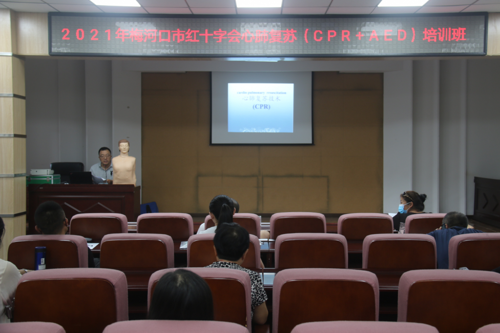 开展应急救护培训,普及应急救护知识,组织志愿者参与现场救护是《中华人民共和国红十字会法》赋予红十字组织的重要职责。为推进梅河口市红十字应急救护工作高质量发展,发挥红十字会在公众参与应急救护培训中主体作用,不断提高应急救护知识在人民群众中普及率,按照省红十字会要求,秉承“公众参与、现场教学、注重质量、稳步推进”的原则,2021年7月21日,举办心肺复苏(CPR+AED)课程培训班,市卫生健康局、市中心血站、松江社区等40余人参加了此次培训 。