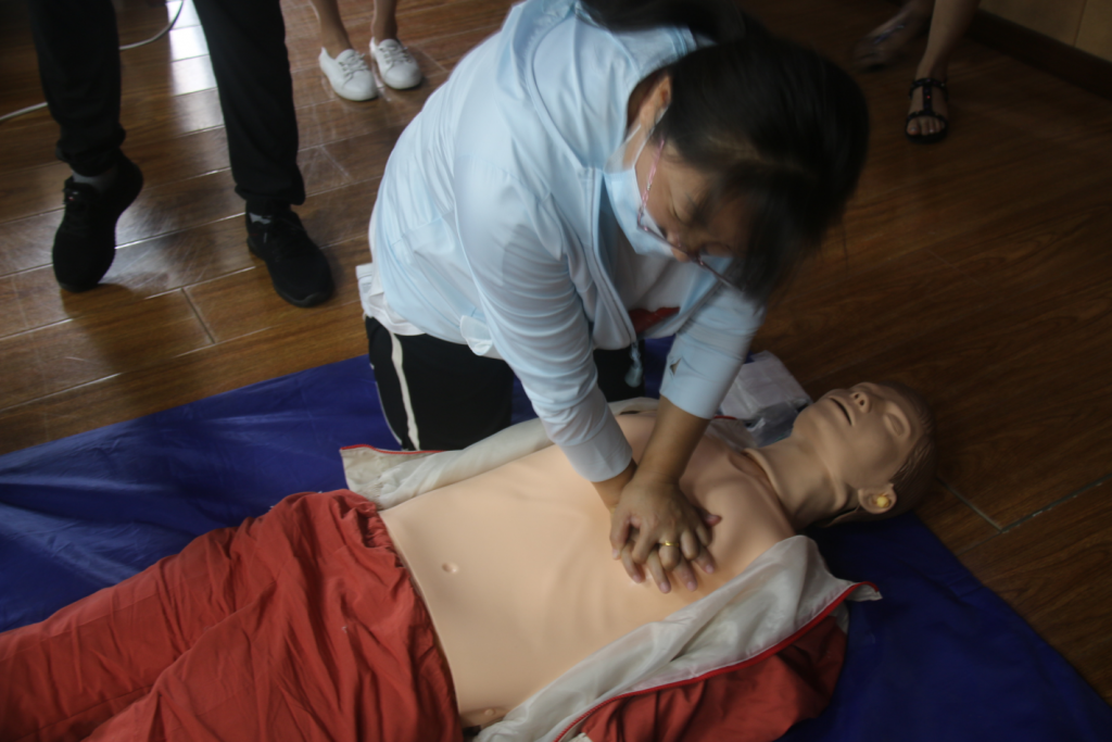 围绕心肺复苏基本技术,培训采取理论授课、示范讲解及实际操作等方式,在示范操作演示中,应急救护培训师详细地教授了心肺复苏步骤方法及注意事项 。