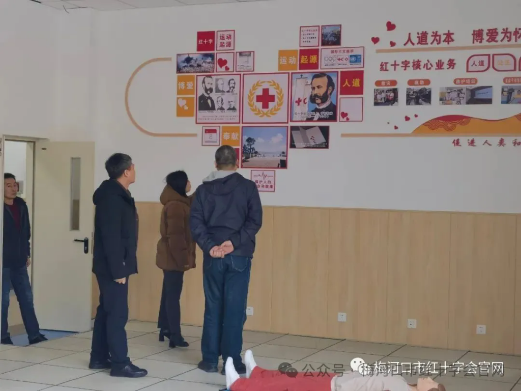 2023年2月17日,吉林省红十字会领导对我市红十字会工作情况进行调研。调研期间,省红十字会领导来到梅河口市红十字会应急救护基地、康美文化墙参观指导,对培训场地、体验馆、教室及教学设施建设给予了充分肯定。