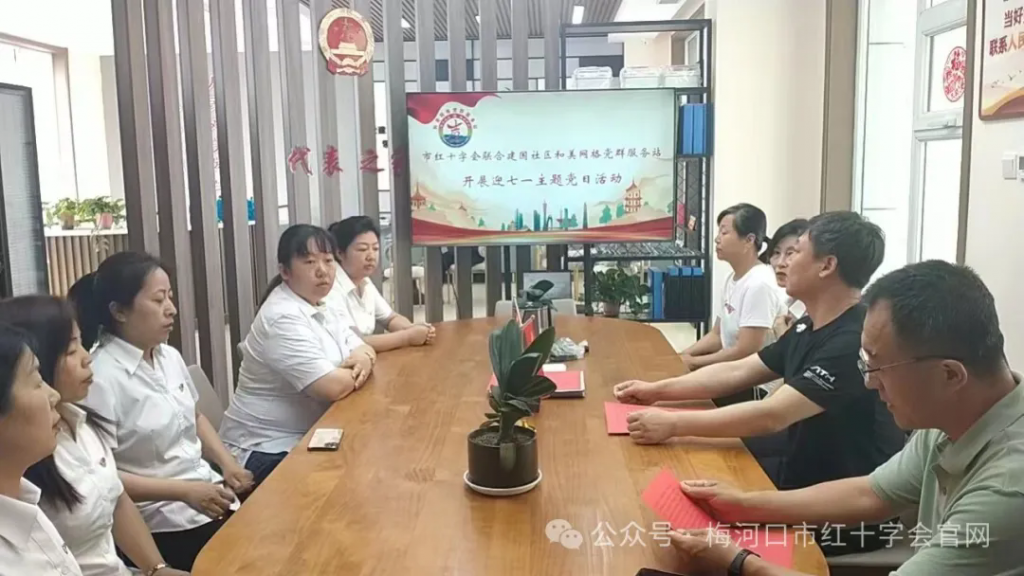 7月1日市红十字会联合建国社区和美网格党群服务站开展迎“七·一”主题党日等系列活动