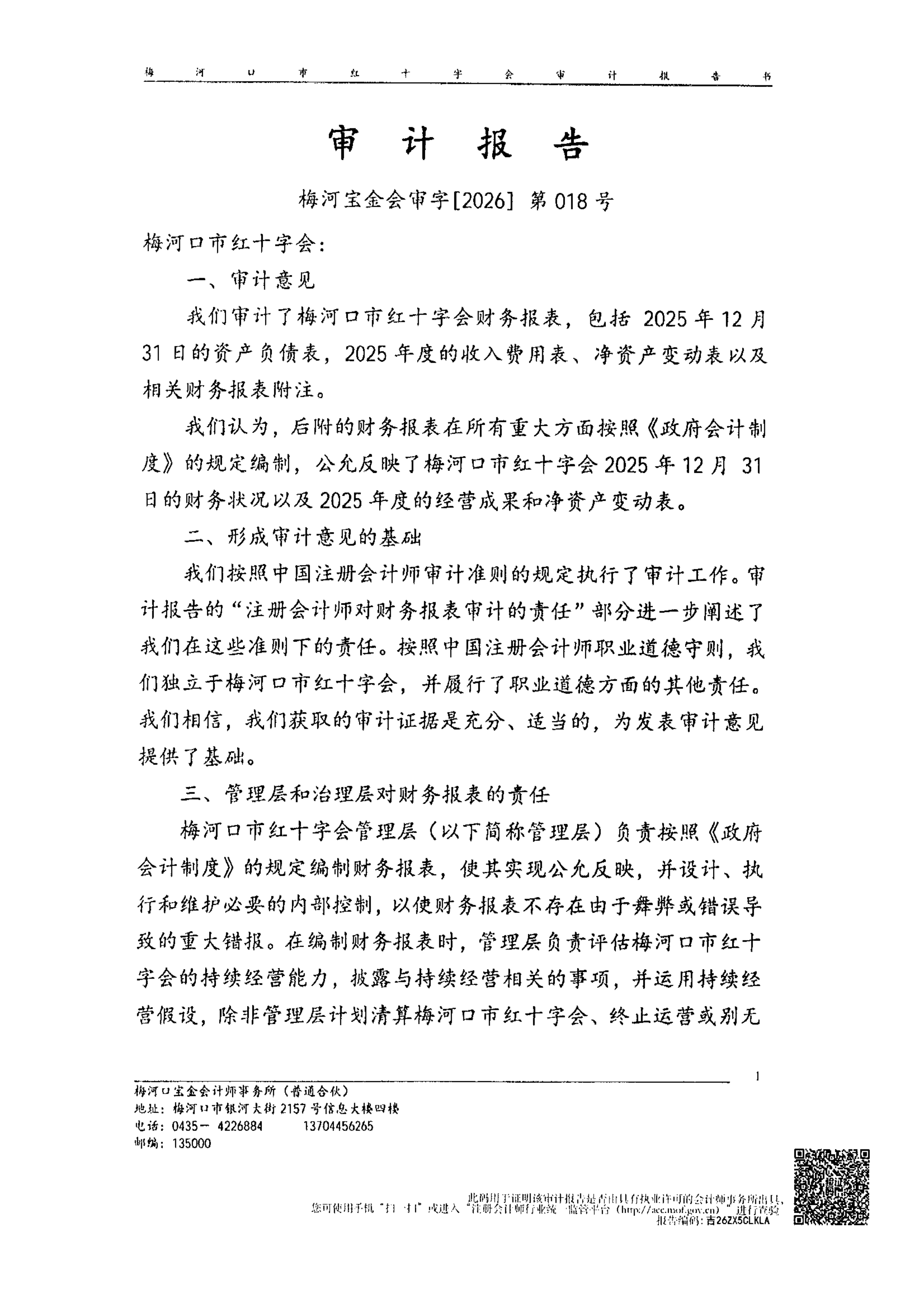 梅河口市红十字会2025年度财务审计报告