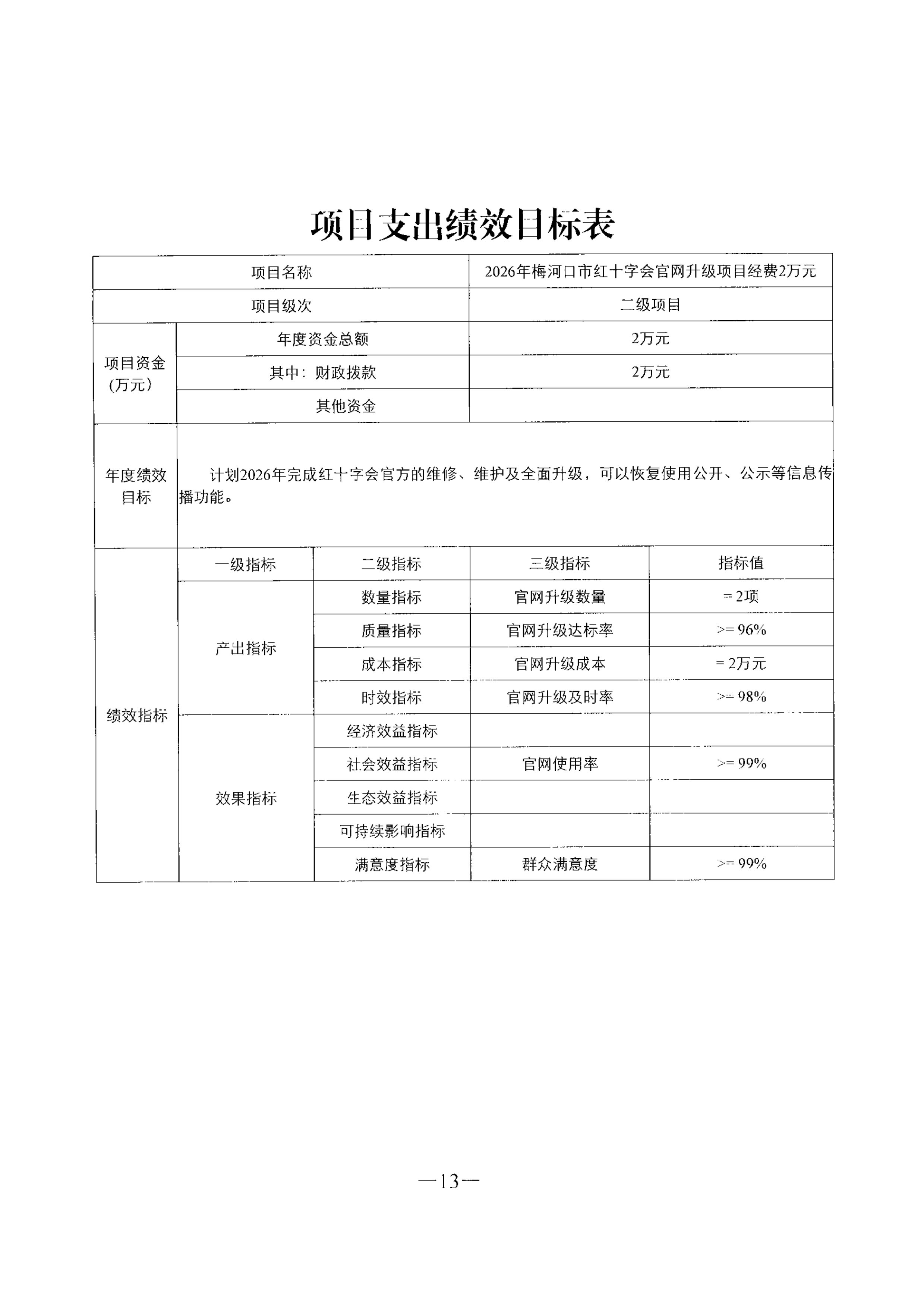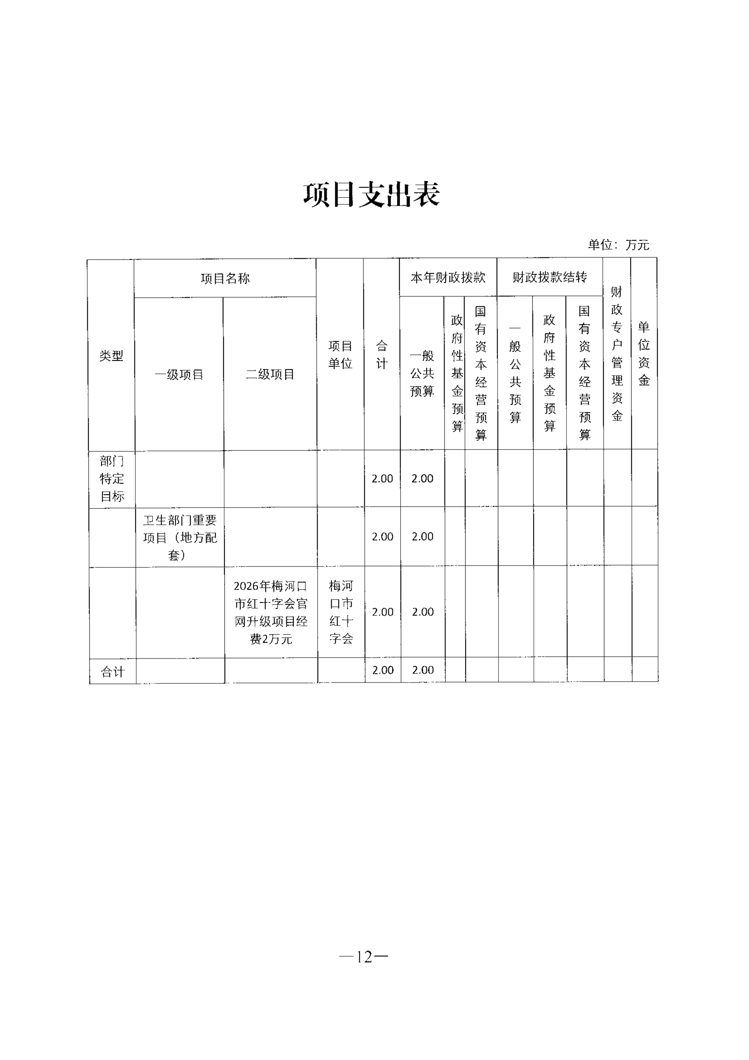 梅河口市红十字会2026年预算