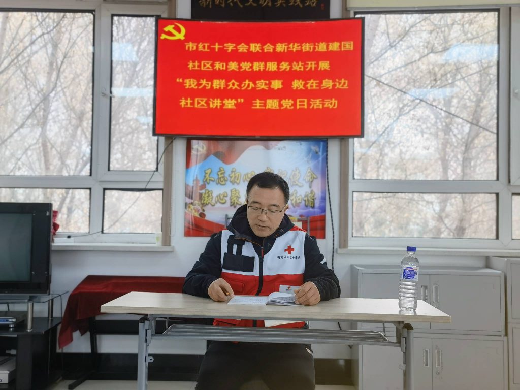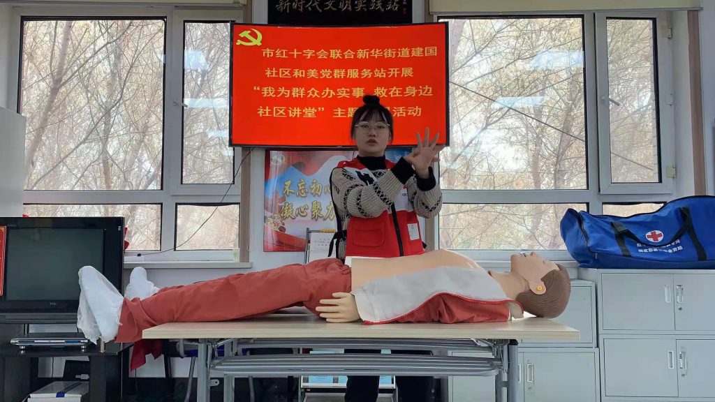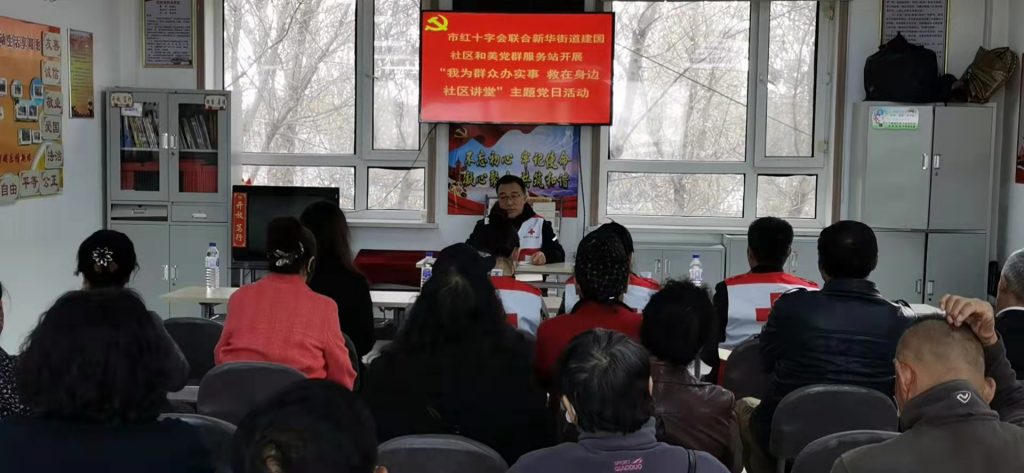 市红十字会救护师对社区工作人员及小区群众开展应急救护培训,围绕心肺复苏基本技术,培训采取理论授课、示范讲解及实际操作等方式,在示范操作演示中,应急救护培训师详细地教授了心肺复苏步骤方法及注意事项 。