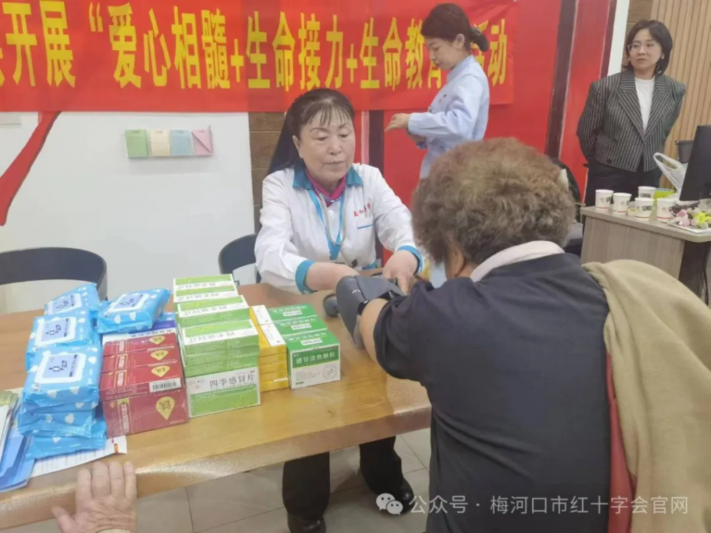 5月7日,市红十字会联合市万和堂中医院深入市福民街道砂轮社区博爱家园开展“养老服务+生命教育”活动。开展现场义诊、发放免费药品和优惠卡等志愿服务活动,通过悬挂宣传条幅、发放宣传品,现场讲解普及应急救护知识,并对街道辖区内困难群众进行人道救助。