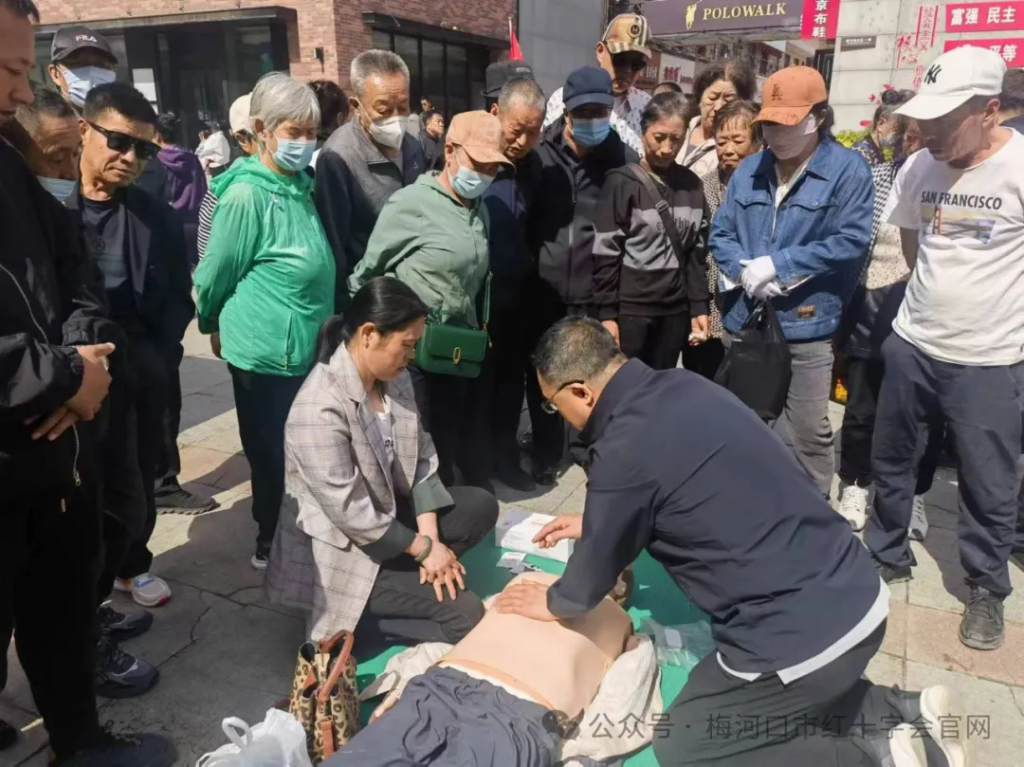 5月8日,市红十字会联合建国社区、雅阁应急救援公益车队开展“救在身边+生命教育”活动。弘扬“人人学急救,急救为人人”的社会风尚,践行红十字会“保护人的生命和健康”的宗旨,发挥红十字会在公众场所参与应急救护培训中的主体作用,不断提高应急救护知识在人民群众中普及率。开展搭建帐篷、心肺复苏、外伤包扎3项应急救护演练,与群众互动,手把手教学,提高群众学习兴趣,掌握急救技能,普及急救知识,营造“人人学急救、急救为人人”的浓厚氛围,并开展“5.8”公益日现场募捐活动。